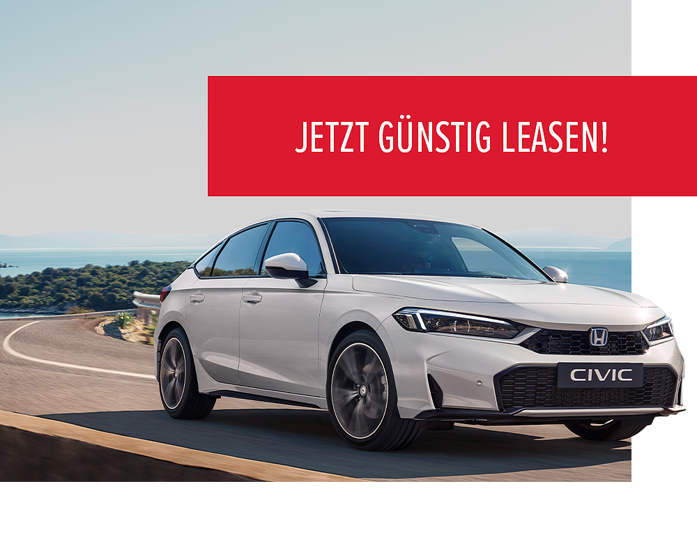 * Ein unverbindliches Leasingangebot der Honda Bank GmbH, Hanauer Landstraße 222–226, 60314 Frankfurt am Main, auf Basis der unverbindlichen Preisempfehlung von Honda Deutschland. Angebot gültig bei entsprechender Bonität bei allen teilnehmenden Honda Vertragshändlern.